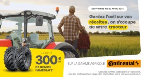 Du 1er Mars au 30 Avril 2024, profitez de l’offre jusqu’à 300€ HT* de remise immédiate sur la gamme Agricole Continental. Détail des […]